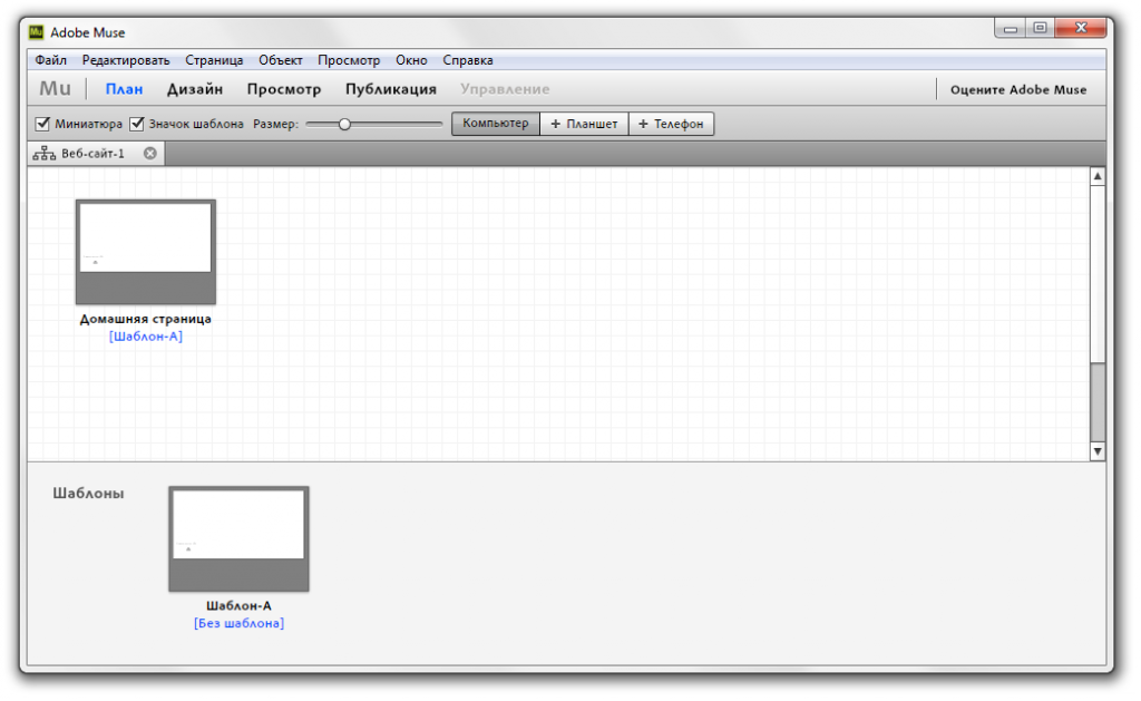 Adobe Muse СС — графический редактор, ориентированный на создание сайтов, небольших интернет-магазинов и лендинг пейдж без необходимости написания кода.