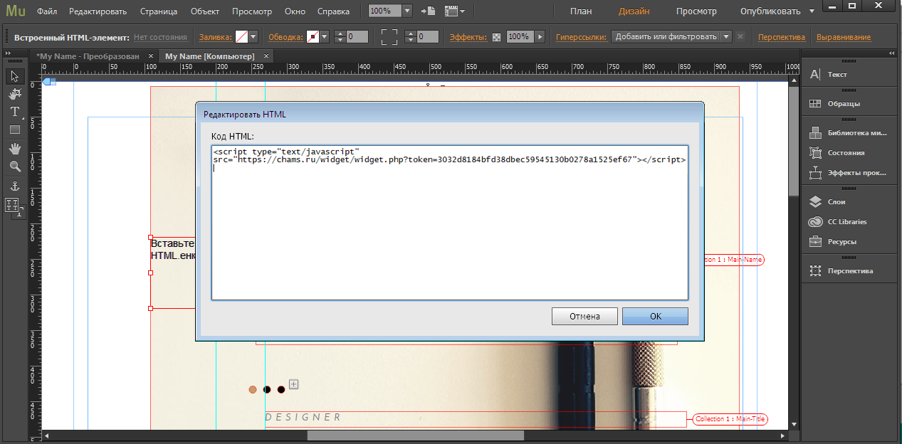 Инструкция по установке кода на Adobe Muse