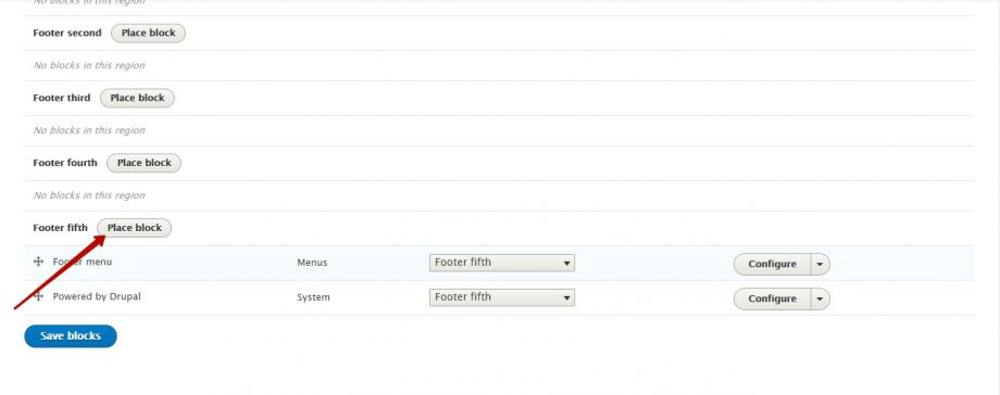 Нажать на кнопку Peace Block рядом с Footer Fifth