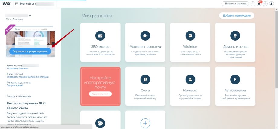 Авторизоваться на сайте WIX Вашей учетной записью администратора