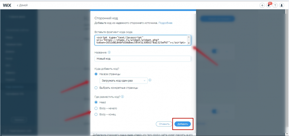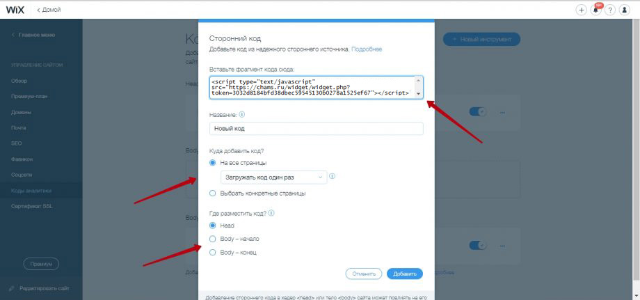 Далее вставляем код виджета из личного кабинета в окно Вставьте Фрагмент Кода Сюда