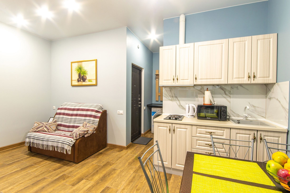 Апартаменты находятся в курортном районе Дагомыса (Сочи), рядом со знаменитыми 4-х и 5-ти звездочными отелями. Выполнен современный ремонт, новая мебель.В апартаментах есть абсолютно все для комфортного проживания и питания, а также средства по уходу за одеждой и помещением.
