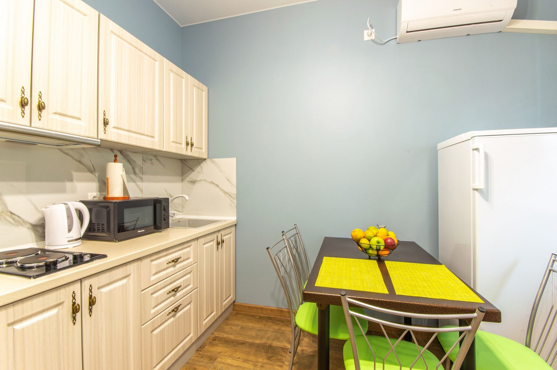 Рядом с апартаментами находятся: Пятерочка, Магнит, Fix Price, овощной рынок, Светофор, банкоматы и магазины сотовых операторов.