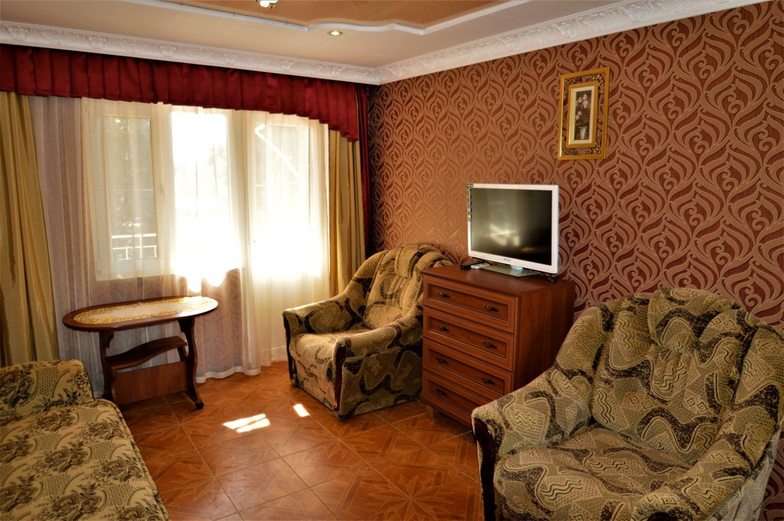 Именно сейчас забронировать его выгоднее, так как стоимость будет подниматься с увеличением загрузки пансионата, а ещё таких номеров - всего 2 (Два).